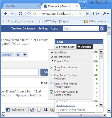 Anda pengen online di Facebook dan pengen sambil chatting? Atau kebalikannya pengen online tapi gak mau chatting atau gak terlihat online? Saat ini Facebook menerapkan fitur baru Chatting. Kalo diperhatikan hari ini, fitur Chat di Facebook ada perubahan, biasanya fitur Facebook yang terlihat di taskbar bagian bawah ada dua menu yakni daftar Friends yang Online dan Option yang digunakan untuk mengatur Chatting seperti Offline atau Online.